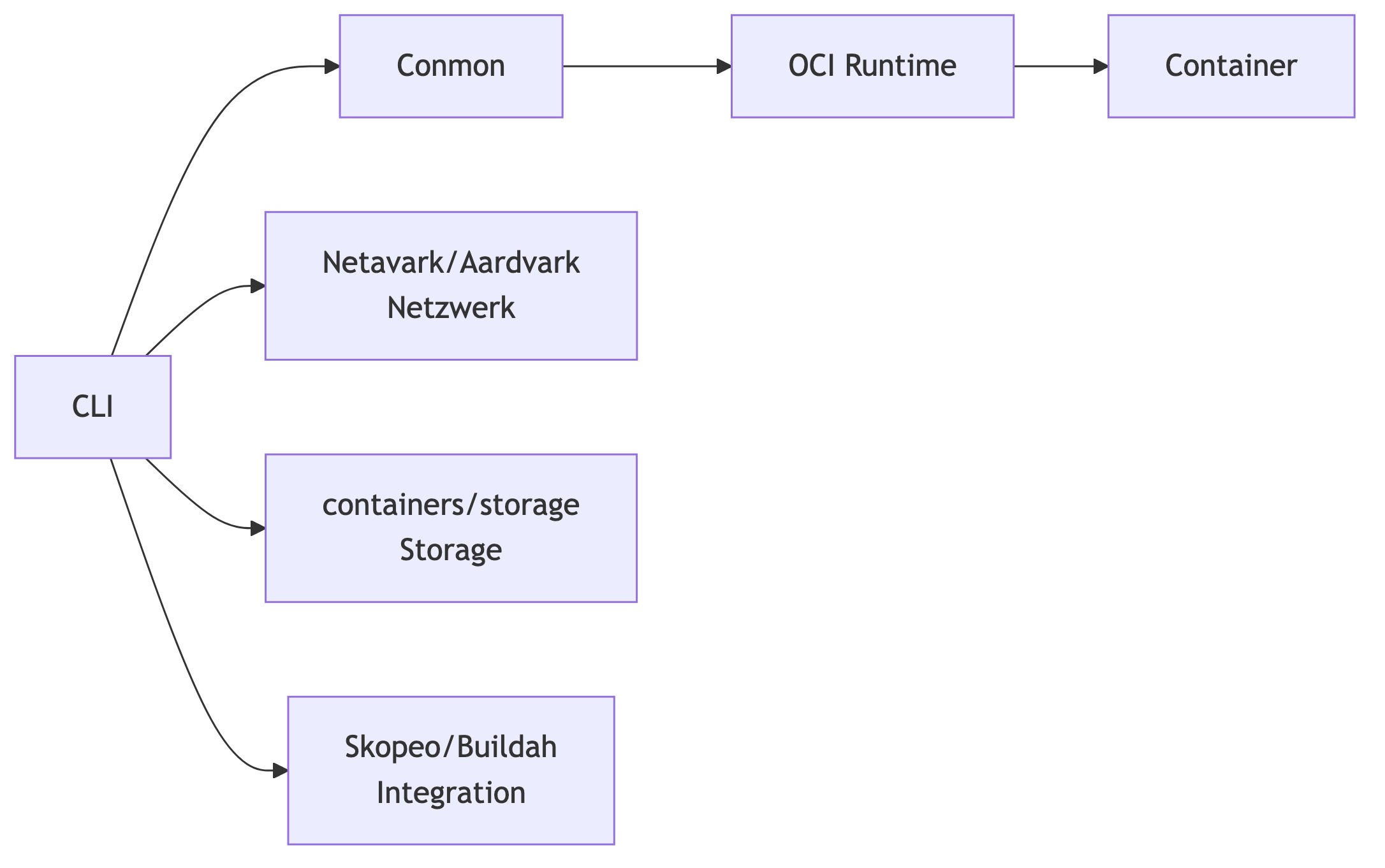 Die podman-CLI ist ein reines Frontend. Sie übernimmt