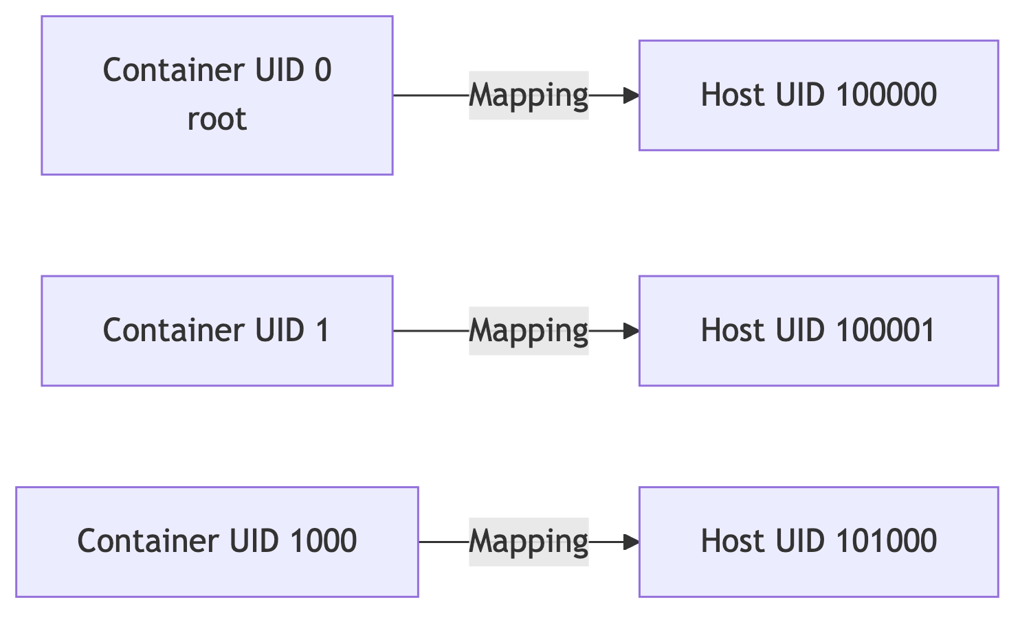 Das Mapping basiert auf den Einträgen in /etc/subuid und