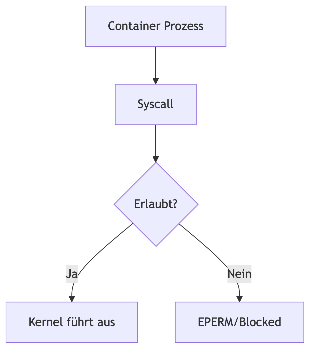 Seccomp (Secure Computing Mode) ist ein Syscall-Filter des Kernels. Er bestimmt, welche Systemaufrufe ein Prozess ausführen darf und welche blockiert werden. Container benötigen typischerweise nur einen Bruchteil der verfügbaren Syscalls.