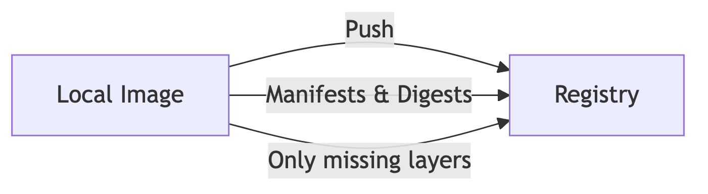 Der Vorgang folgt streng dem Prinzip der referenzierten Unveränderlichkeit: Layer, die bereits in der Registry existieren, werden nicht erneut übertragen. Dieser Mechanismus reduziert sowohl Netzwerklast als auch Speicherverbrauch und ermöglicht effiziente DevOps-Pipelines.