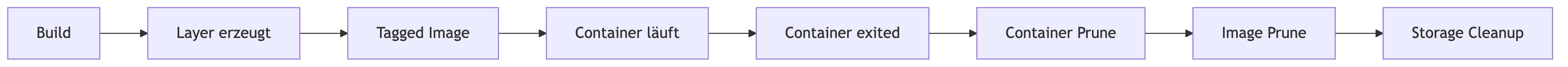 Layer-basierte Engines löschen nur das, was sicher frei ist. Das bedingt, dass Pruning teils stufenweise erfolgen muss: erst Container, dann Images, dann Volumes.