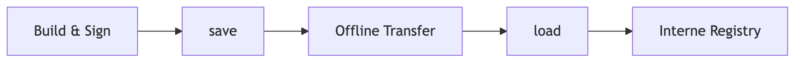 In vielen Branchen – Industrie, Behörden, Medizin – sind Air-Gap-Cluster der Normalfall. Dort stehen Pulls aus Public Registries nicht zur Verfügung. Die Übertragung erfolgt über: