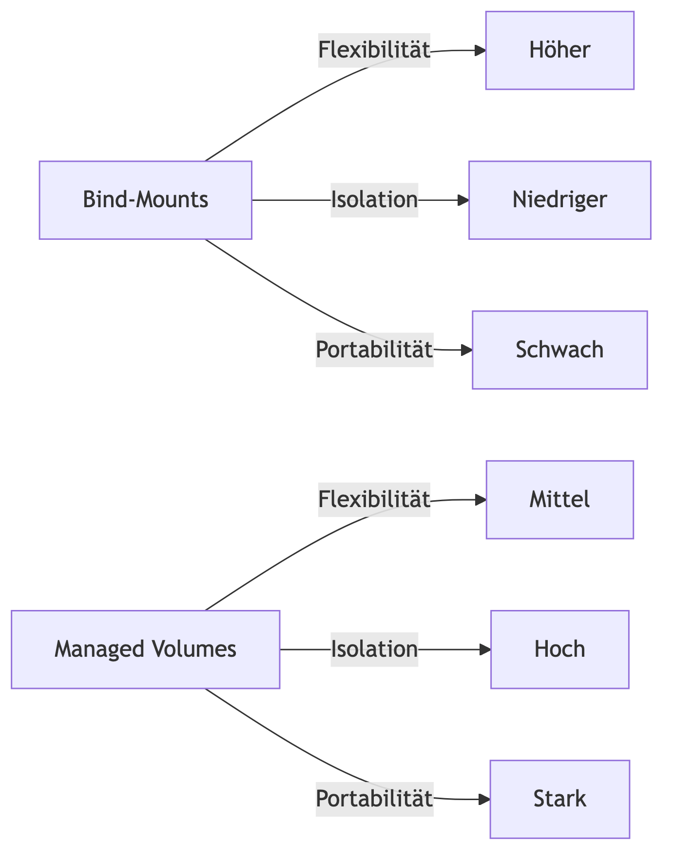 | Bind-Mounts | sehr hoch | niedrig | abhängig vom Host |