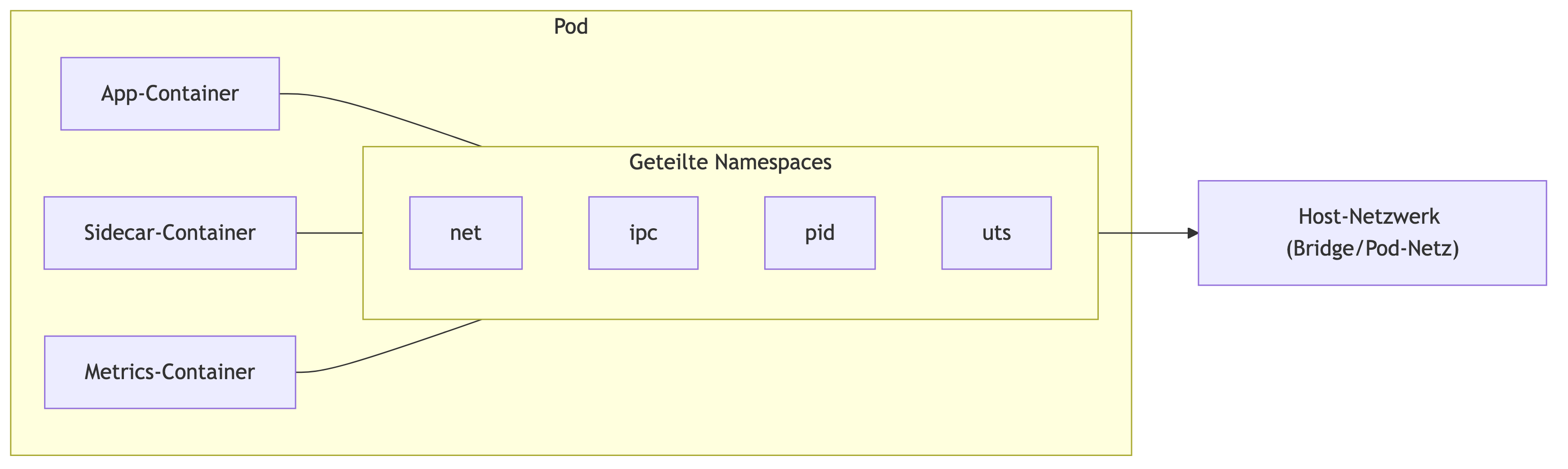 Ein Pod ist eine gemeinsame Ausführungsumgebung. Technisch bedeutet das: