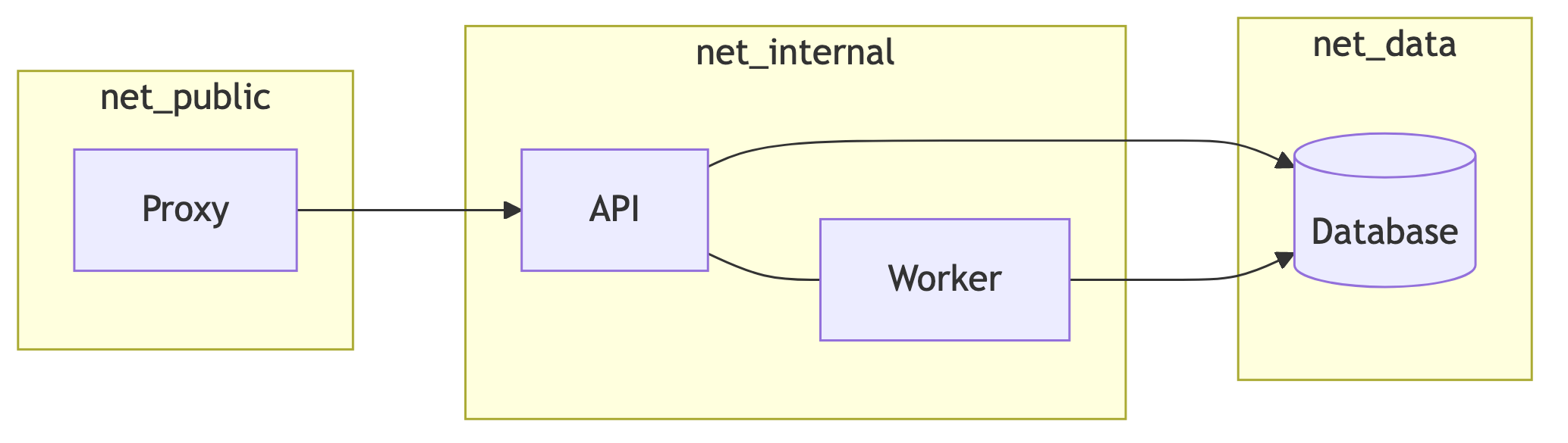 Drei Services, ein Host, zwei Netzwerke. Schnell startbar, schnell testbar, hoch stabil.