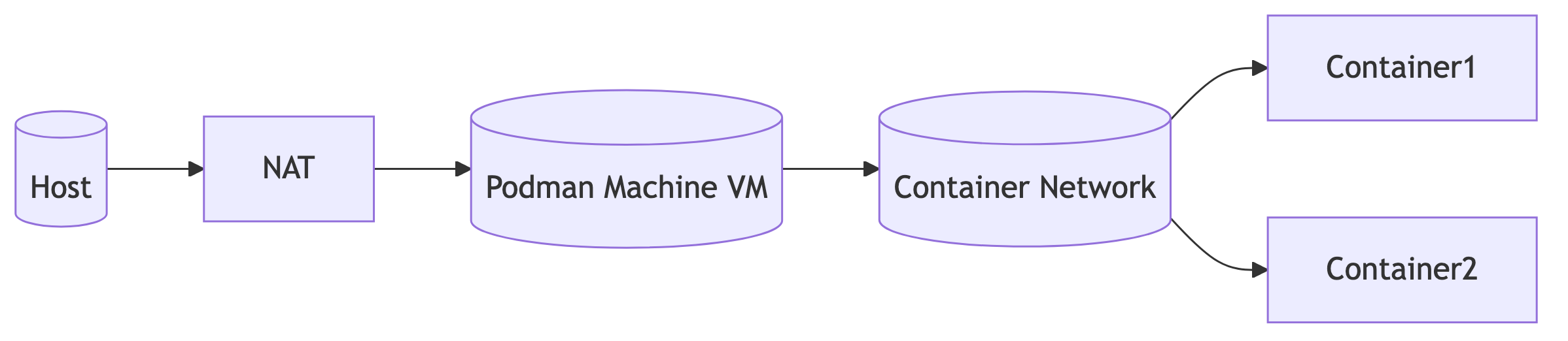 Podman Machine erzeugt ein NAT-Netzwerk zwischen Host und VM. Ein wesentliches Detail: