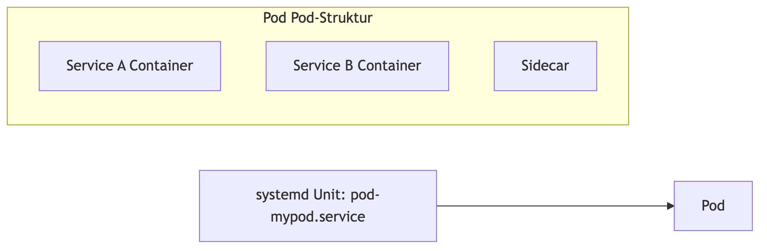 systemd behandelt den Pod dann als orchestrierbare Einheit. Für microservice-artige Strukturen, die eng gekoppelte Teilprozesse beinhalten, entsteht damit ein minimalistisches Orchestrierungsmodell ohne externen Orchestrator.