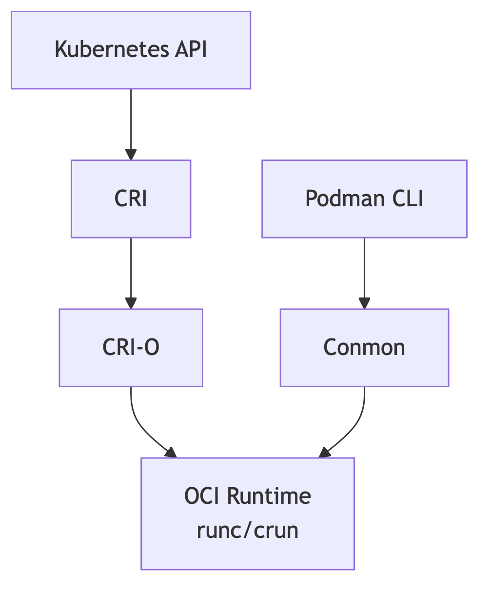 CRI-O wurde zuerst entwickelt – Podman folgte später. Diese Reihenfolge erklärt mehrere Merkmale der Architektur: