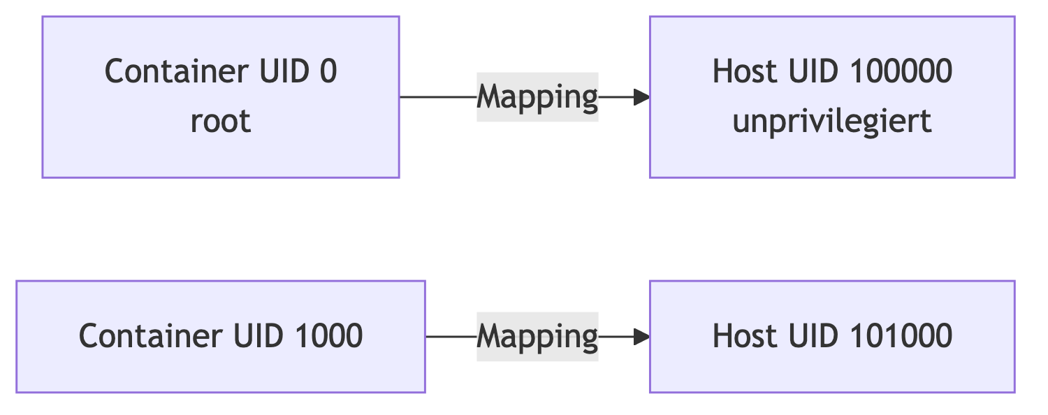 Dieser Mechanismus ermöglicht es Anwendungen, die im Container root-ähnliche Operationen ausführen müssen, ihre Arbeit zu erledigen, ohne dem Host tatsächliche Privilegien abzuverlangen.