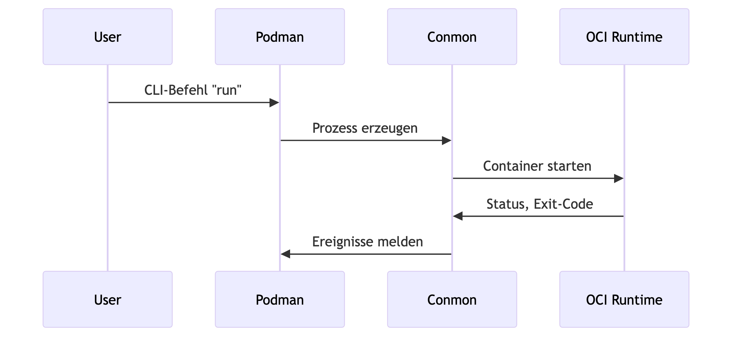 Diese Struktur macht Podman robust, nachvollziehbar und frei von Hintergrunddiensten, die Zustand verwalten müssten.