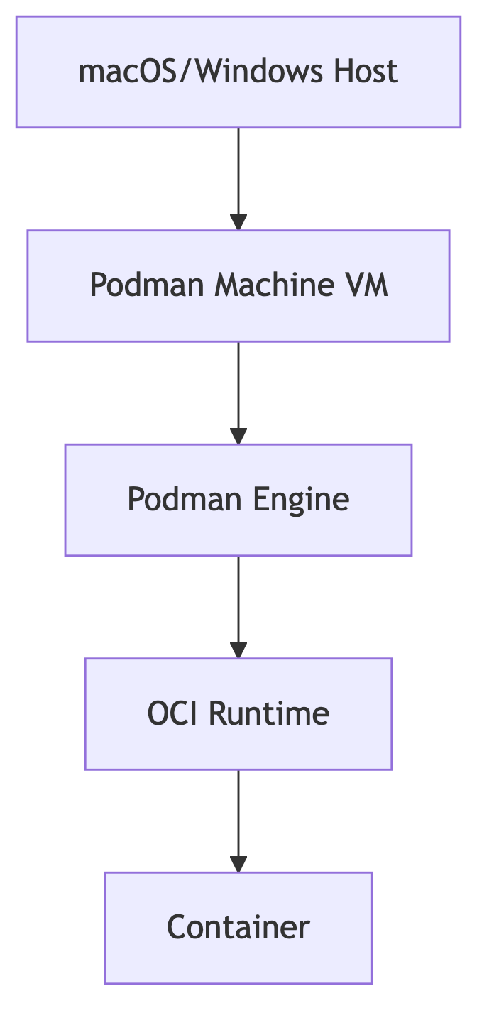 Podman Machine stellt eine minimal konfigurierte VM bereit, die Podman ausführt – ähnlich wie Docker Desktop, aber ohne proprietäre Komponenten. Es nutzt: